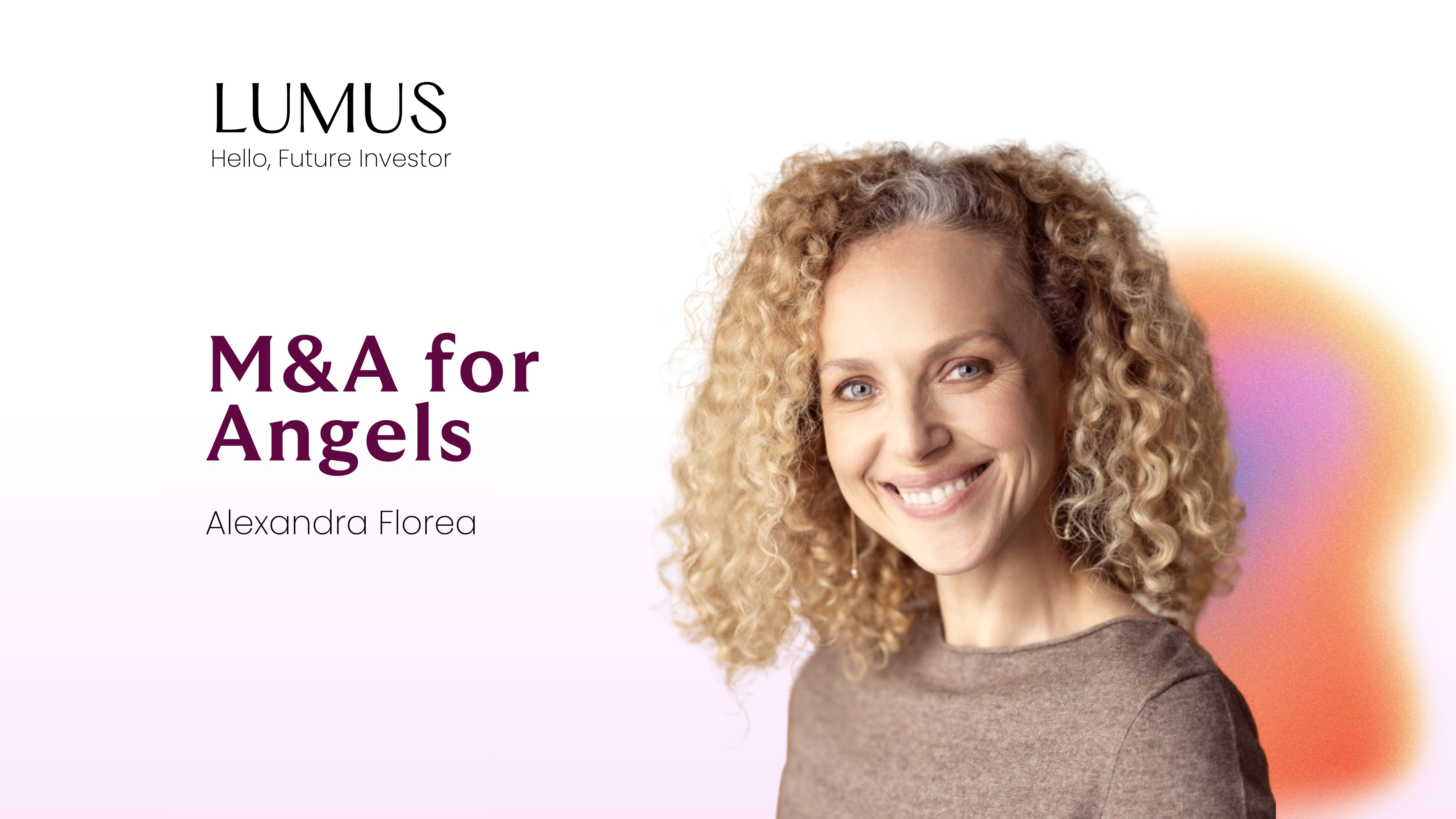 That was the through-line of our recent LUMUS webinar with Alex Florea, who spent 25 years in M&A — first as a corporate lawyer doing privatisations across Central and Eastern Europe, then on the buy-side at a private equity fund, and now supporting women founders and investors at Hive. She walked us through what an exit actually looks like from an angel's seat — and what we should be doing long before we get there.